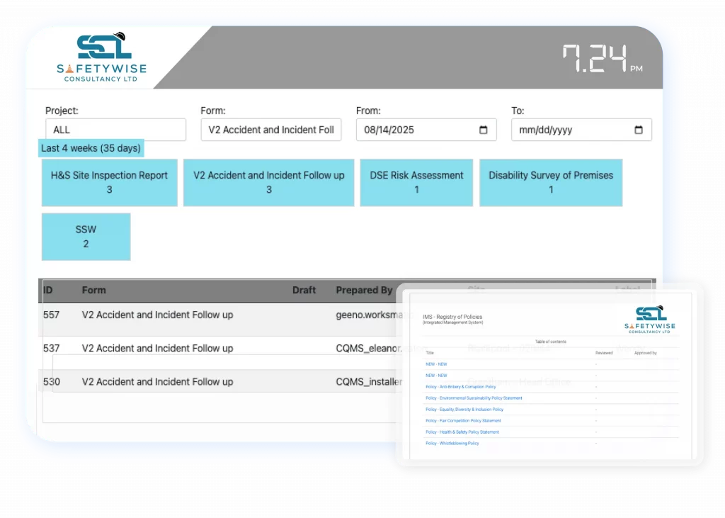- Reports and analytics: generate clear reports to track safety performance and compliance trends.